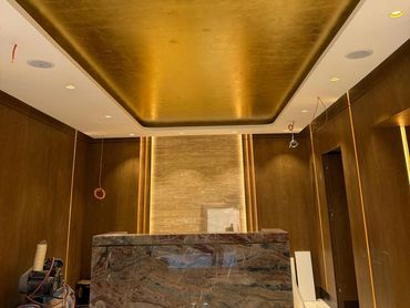 Eminönü’nün tarihi dokusuna ve estetik zenginliğine sahip olan Armine firmasının iç mekân tavan uygulamasında, geleneksel altınvarak sanatını modern detaylarla birleştirerek özel bir çalışma gerçekleştirdik. Uygulama alanında kullanılan varak süslemeler, mekâna sadece bir parlaklık değil; aynı zamanda zarafet, prestij ve göz alıcı bir ambiyans kazandırdı.