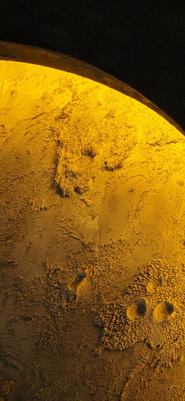 Ay deseniyle tasarlanan tavan yüzeyinde, ışıkla etkileşime geçen metalik dokular ve dokulu boya teknikleri kullanılarak, mekâna sofistike bir atmosfer kazandırıldı. Uygulama sırasında kullanılan özel reflektif pigmentler, tavanın günün farklı saatlerinde farklı derinliklerde algılanmasını sağladı.