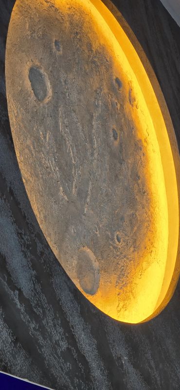 Showroomumuzun merkezinde konumlanan bu ay desenli tavan, yalnızca bir iç mekân detayı değil; aynı zamanda markamızın vizyonunu yansıtan sanatsal bir imza niteliğindedir. Ziyaretçilerin ilgisini ilk anda çeken bu detay, prestijli algıyı pekiştirerek hem kullanıcı deneyimini hem de görsel bütünlüğü bir üst seviyeye taşıdı.